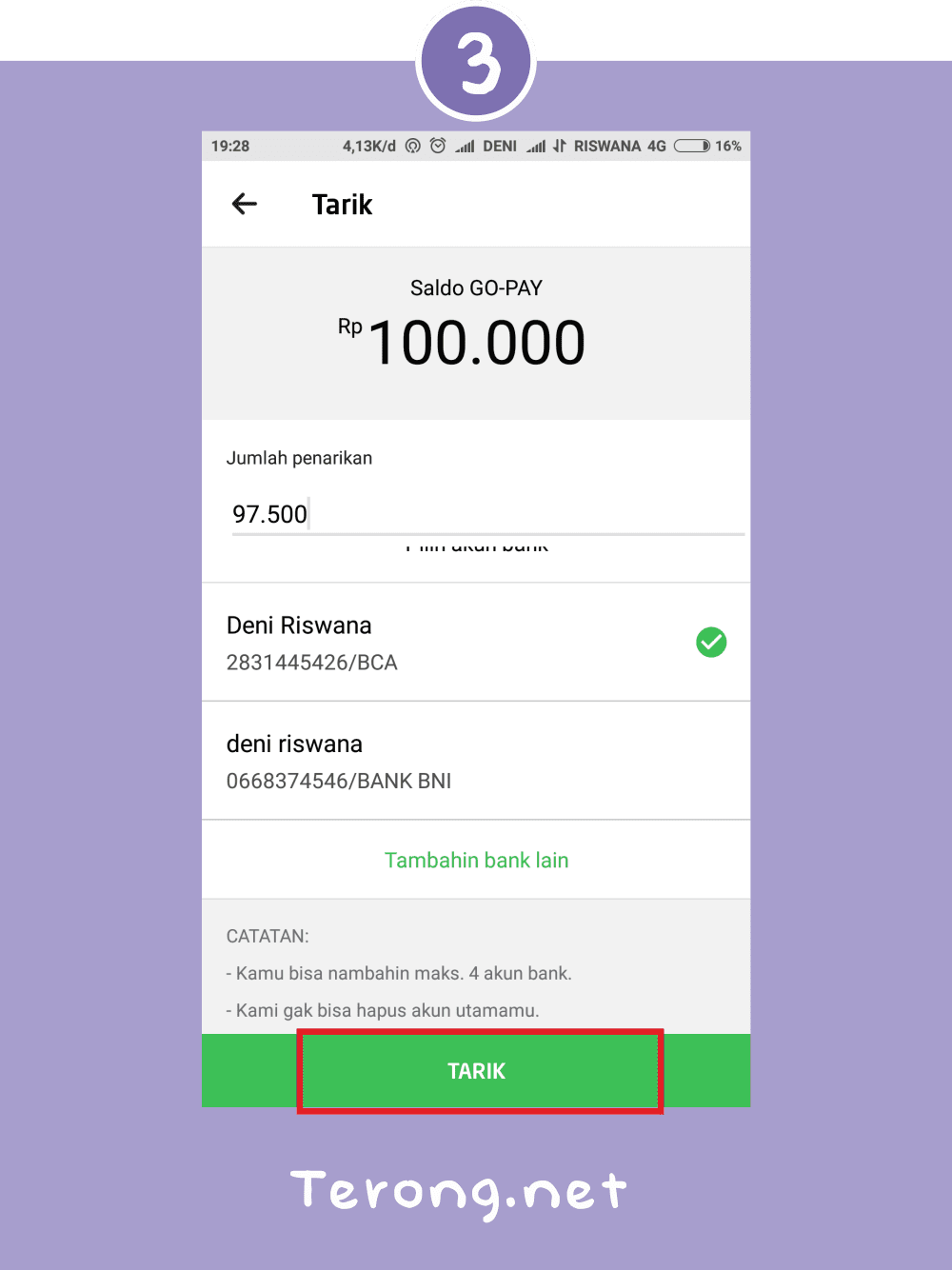 Tapi sebelum dapat melakukan penarikan saldo GO-PAY ke rekening bank, akun Gojek kamu harus terverifikasi terlebih dahulu. Caranya yaitu dengan upload foto KTP dan rekening bank. Pada artikel ini Terong akan mencoba menjelaskan bagaimana cara tarik atau mencairkan saldo GO-PAY ke rekening kamu.